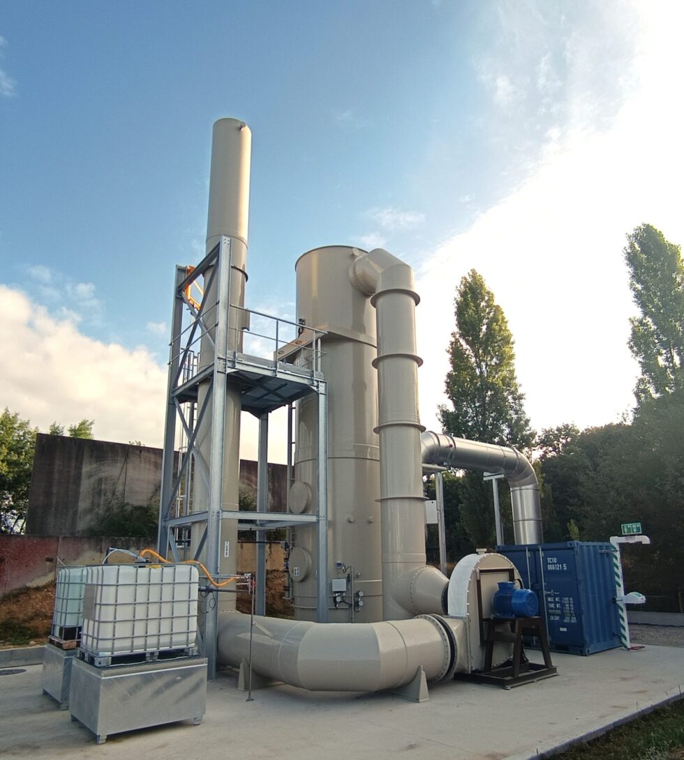- A 12-meter-high stack for elevated dispersion of treated gases,